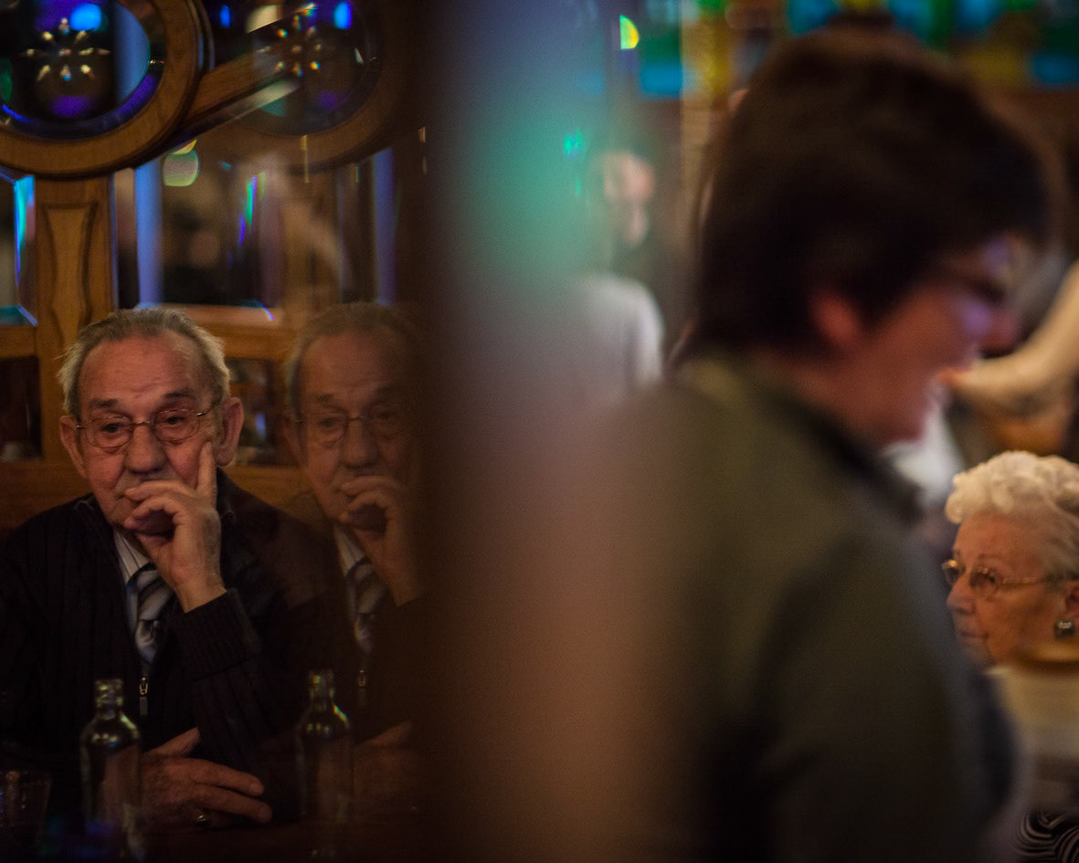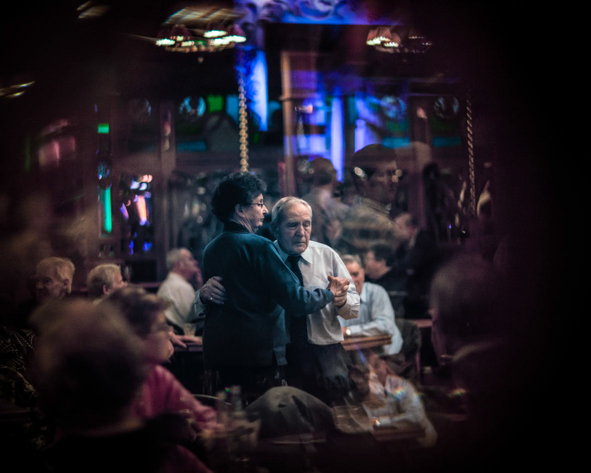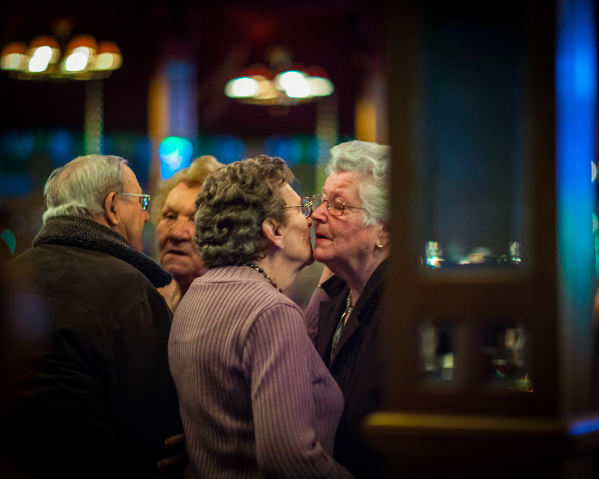 A wordless reflection on a phenomenon that emerged in the 1920s and appears equally alive nearly a century later: the Mirror Hall . Inside the Mirror Hall in the Flemish Kempen, older bodies continue to dance, week after week, as if time has settled somewhere around a perpetual fairground. Though transience is tangible, the tent itself seems suspended—untouched by the concerns and conditions of the outside world. The photographs observe a weekly dance matinée as a quiet ritual, where movement, repetition, and presence form a space temporarily outside of time. noteworthy: my parents used to go there when they were young!